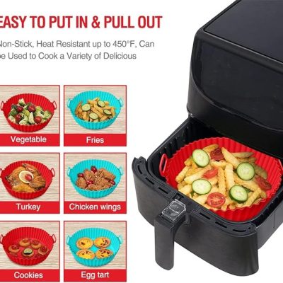 Air Fryer Tray, Silicone Fryer Tray, Baking Tray, Reusable Pot Easy Clean Round/ Grill Plate, Mat Air Fryer Accessories, Fryer Silicone Pot Basket Liner, Non-Stick Air Fryer Baking Tray, Oven Baking Tray – Multicolor (Pack of 1)